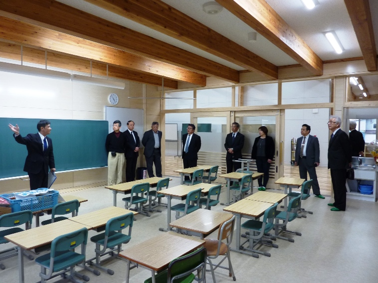 総会終了後は、写真のように新築された留辺蘂小学校の校舎の視察となり、留辺蘂小学校の新熊研二教頭に新校舎のご案内を頂きました。